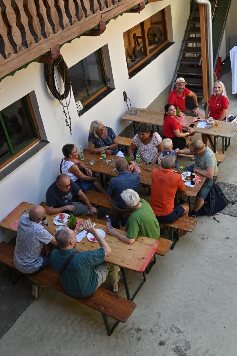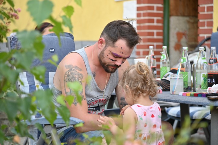 Um 15 Uhr ging es los mit Tanzmusik von Willi aus Grünbach. Da tanzten die junggebliebenen Pensionist:innen bis die Sohlen glühten. Währenddessen gönnten sich die Jungfamilien Weißwürste, Schnitzelsemmerl, Bratwürstel oder Veggie-Burger. Während die Erwachsenen das Fest genossen, tobten sich die Kinder in der Hüpfburg aus, bestaunten Ricardas kleinen Tiergarten oder ließen sich schminken.